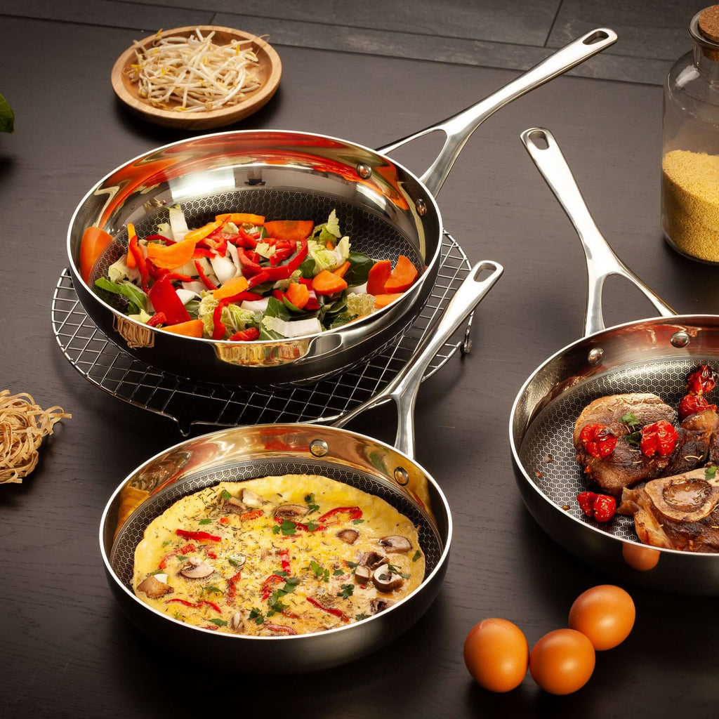 Mit der ausgezeichneten Wärmeverteilung unserer Pfanne erzielen Sie jedes Mal perfekte Kochergebnisse. Die Blackbeard Bratpfanne sorgt dafür, dass sich die Hitze gleichmäßig über die Oberfläche verteilt, wodurch Hotspots vermieden werden und eine präzise Temperaturkontrolle möglich ist. Diese Eigenschaft ist entscheidend für perfektes Anbraten, Sautieren und Frittieren.